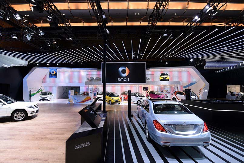 2015年廣東深圳車展奔馳車U型玻璃燈光背景圖項目
